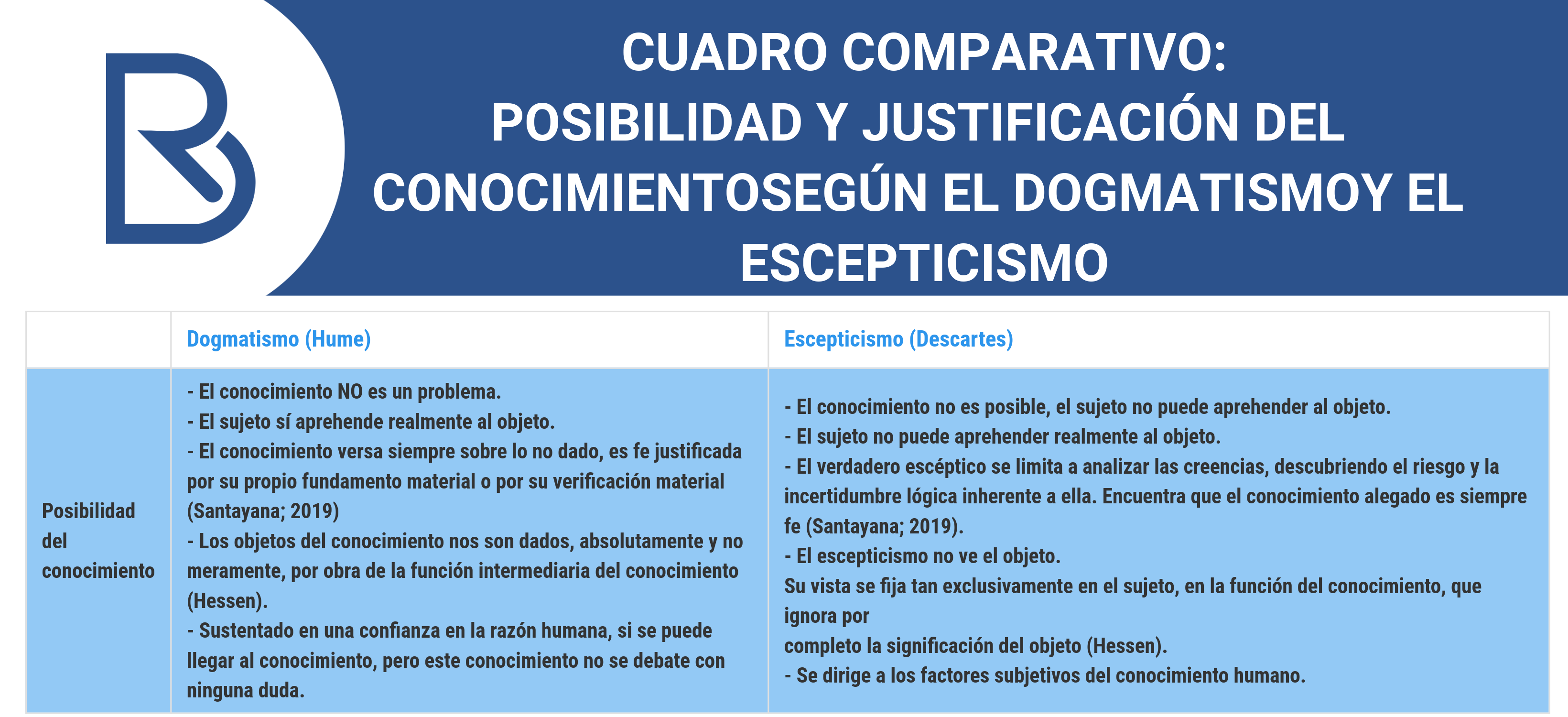 Cuadro Comparativo Posibilidad Y Justificacion Del Conocimiento Segun El Dogmatismo Y El Escepticismo By Raul Baz S Hablemos De Psicologia Medium